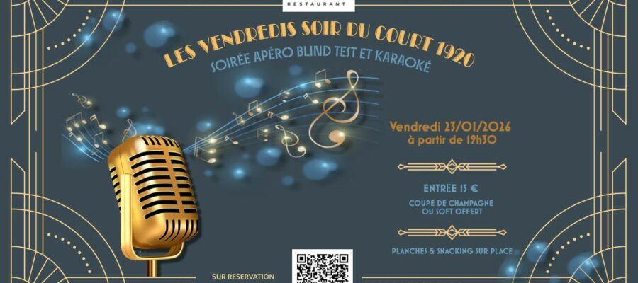 Nous avons le plaisir de vous convier à une soirée conviviale et divertissante : Apéro Blind Test, qui se déroulera le vendredi 23 janvier 2026 à partir de 19h30 au restaurant