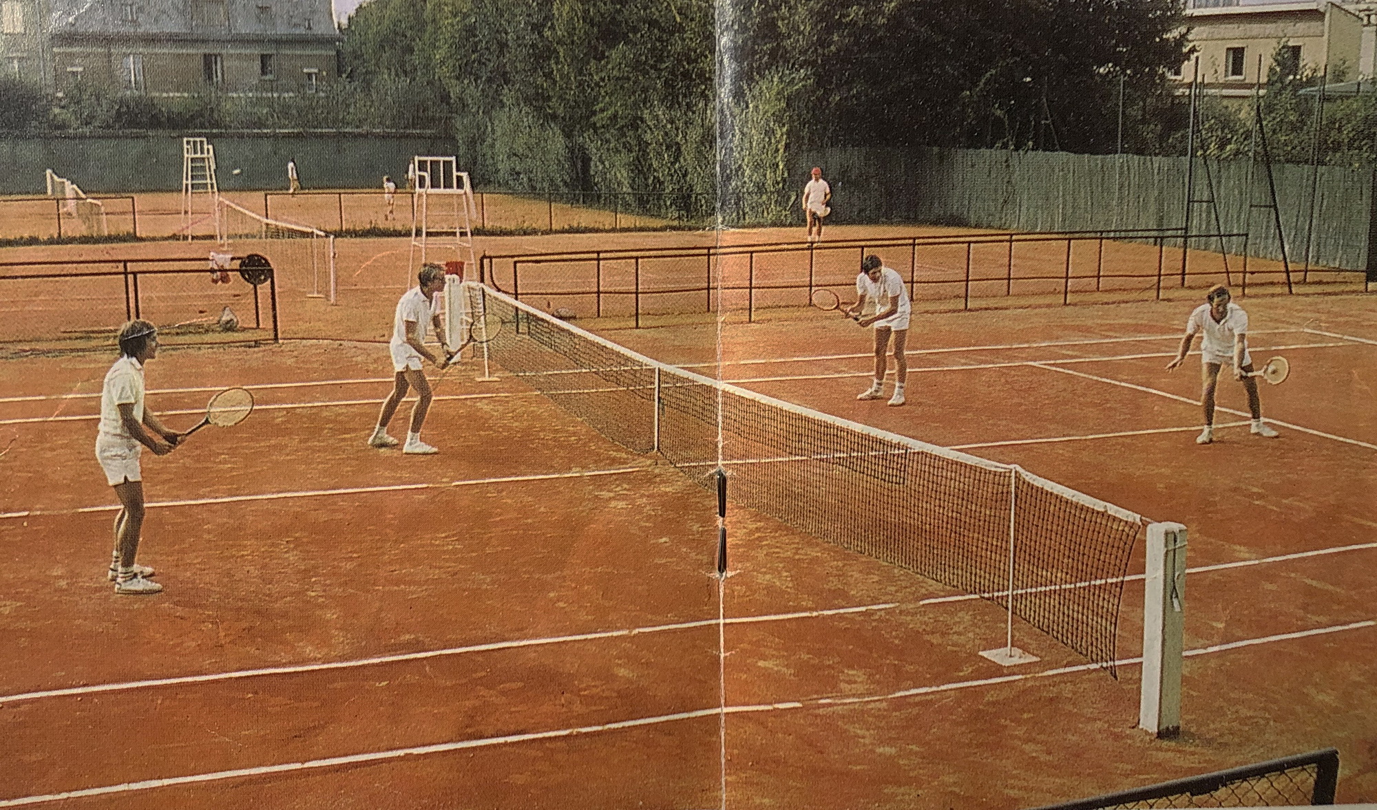 Et maintenant, en couleurs, une démonstration de quatre joueurs sur le court 1 et la piscine des beaux jours (archives M. Verdelet)