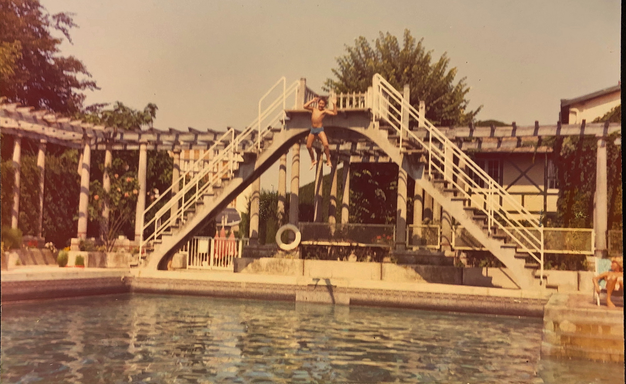 Une des rares photographie de la piscine avec encore le plongeoir.