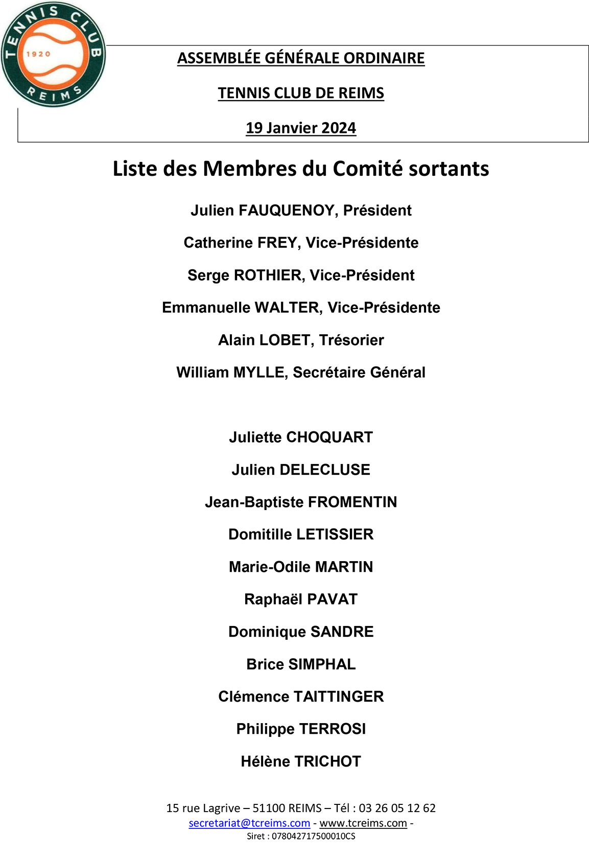 La prochaine Assemblée Générale du Tennis Club de Reims se déroulera le