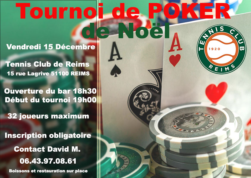 Nous sommes ravis de vous convier à notre soirée « Poker de Noël » qui se déroulera le