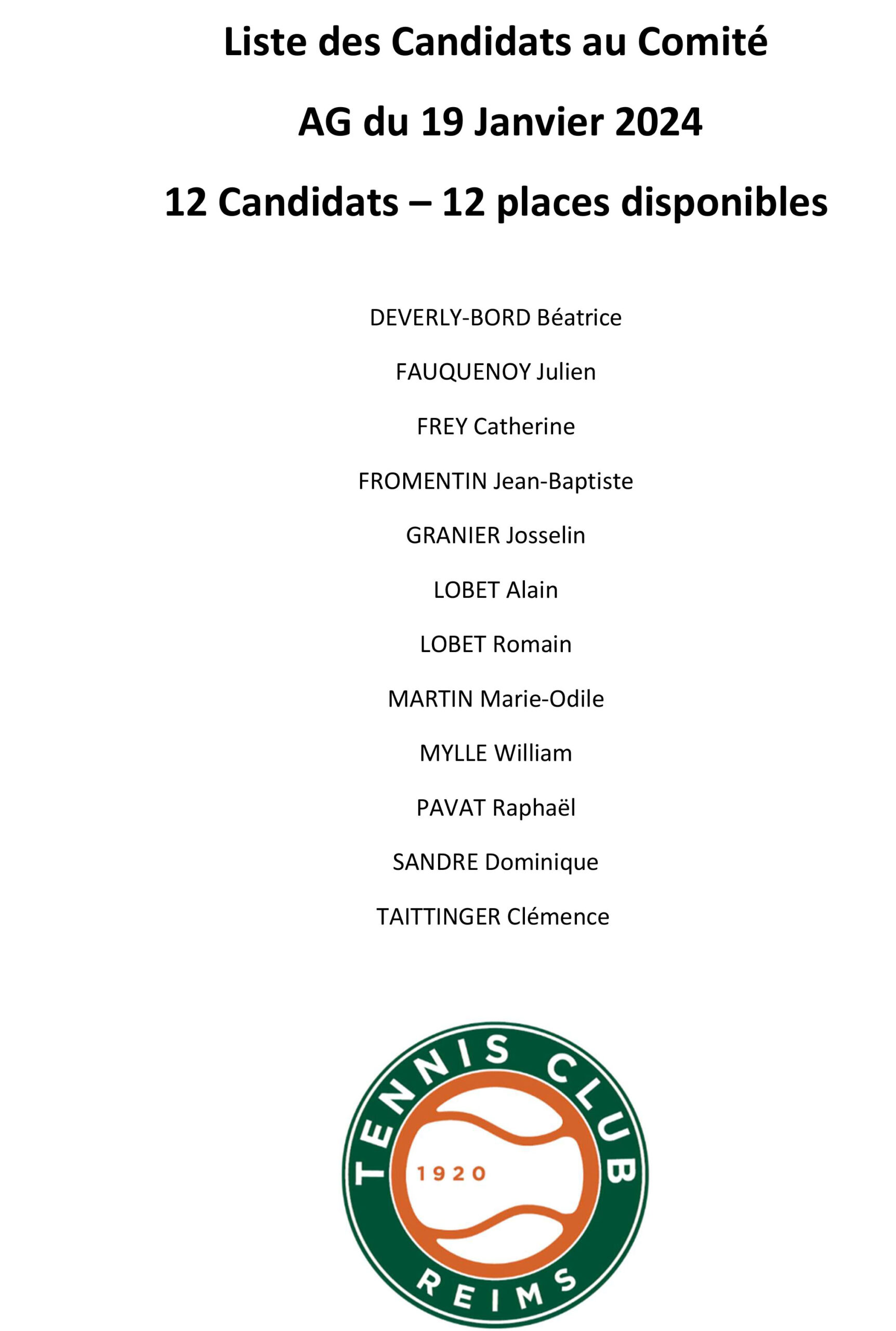 AG du 19 Janvier 2024 : Liste des Candidats au Comité