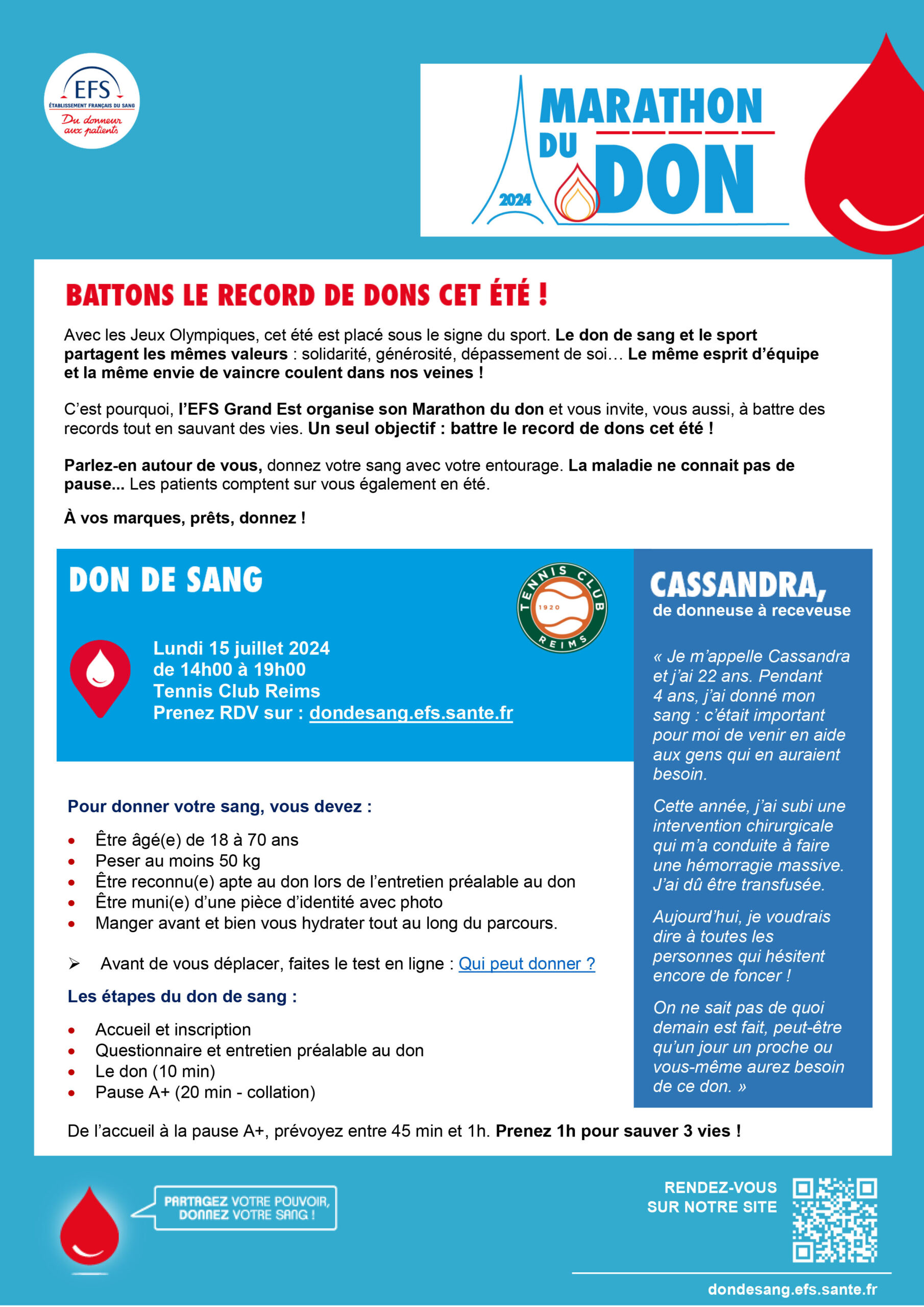 DON DU SANG AU TC REIMS : Lundi 15 Juillet 2024 Inscrivez-vous vite ou venez sur place !!