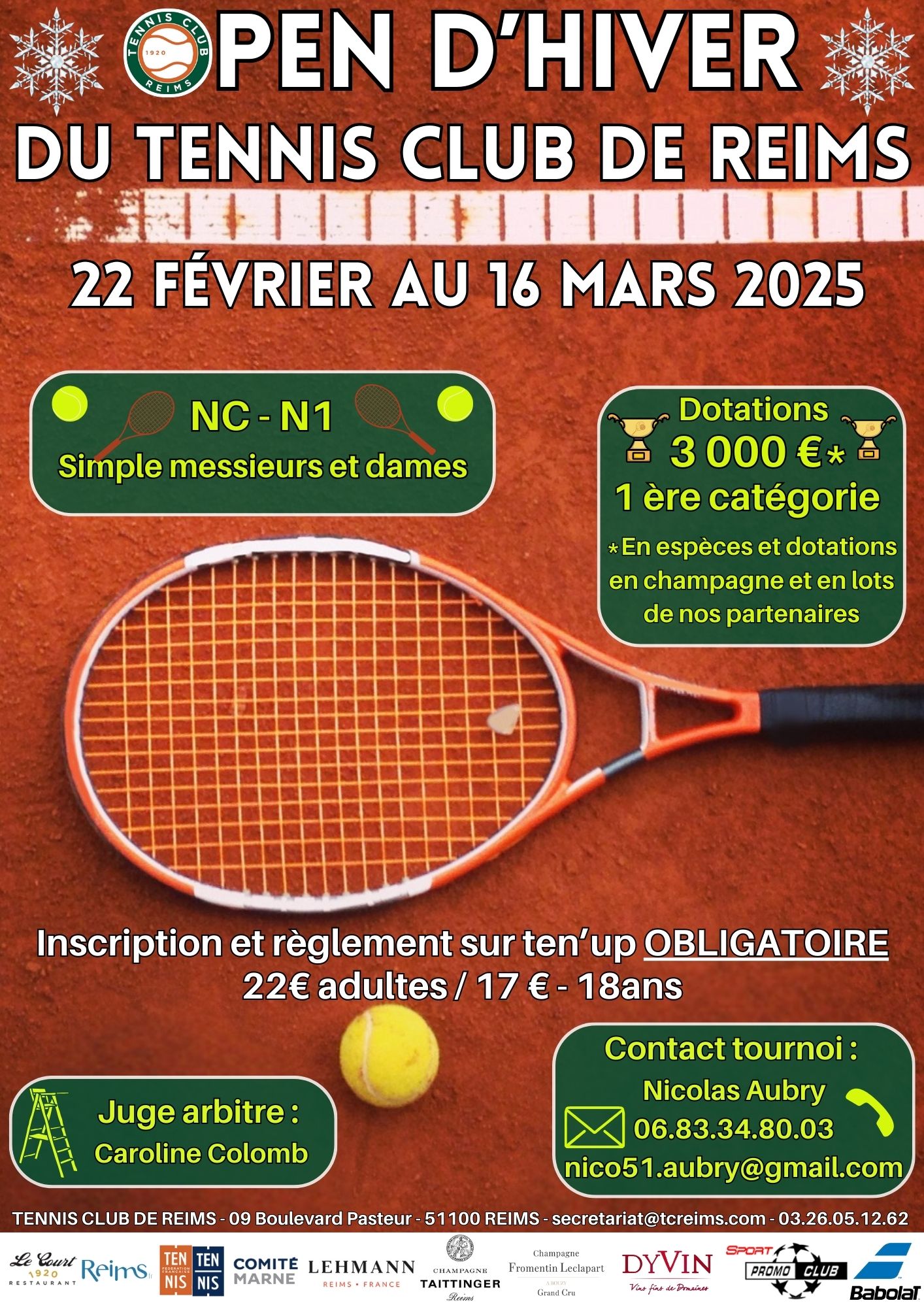 Venez rejoindre l’effervescence du TC Reims lors de notre Open d’Hiver